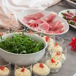 Στις εγκαταστάσεις προσφέρεται πρωινό με μπουφέ. Στο à la carte restaurant μπορείτε να απολαύσετε διάφορα πιάτα Mediterrane. Οι επισκέπτες καλούνται στο lounge bar του ξενοδοχείου για να χαλαρώσουν με ένα ποτό. Το Piadapark, που απέχει 250 μέτρα από κατάλυμα, προσφέρει απολαυστικά πιάτα.